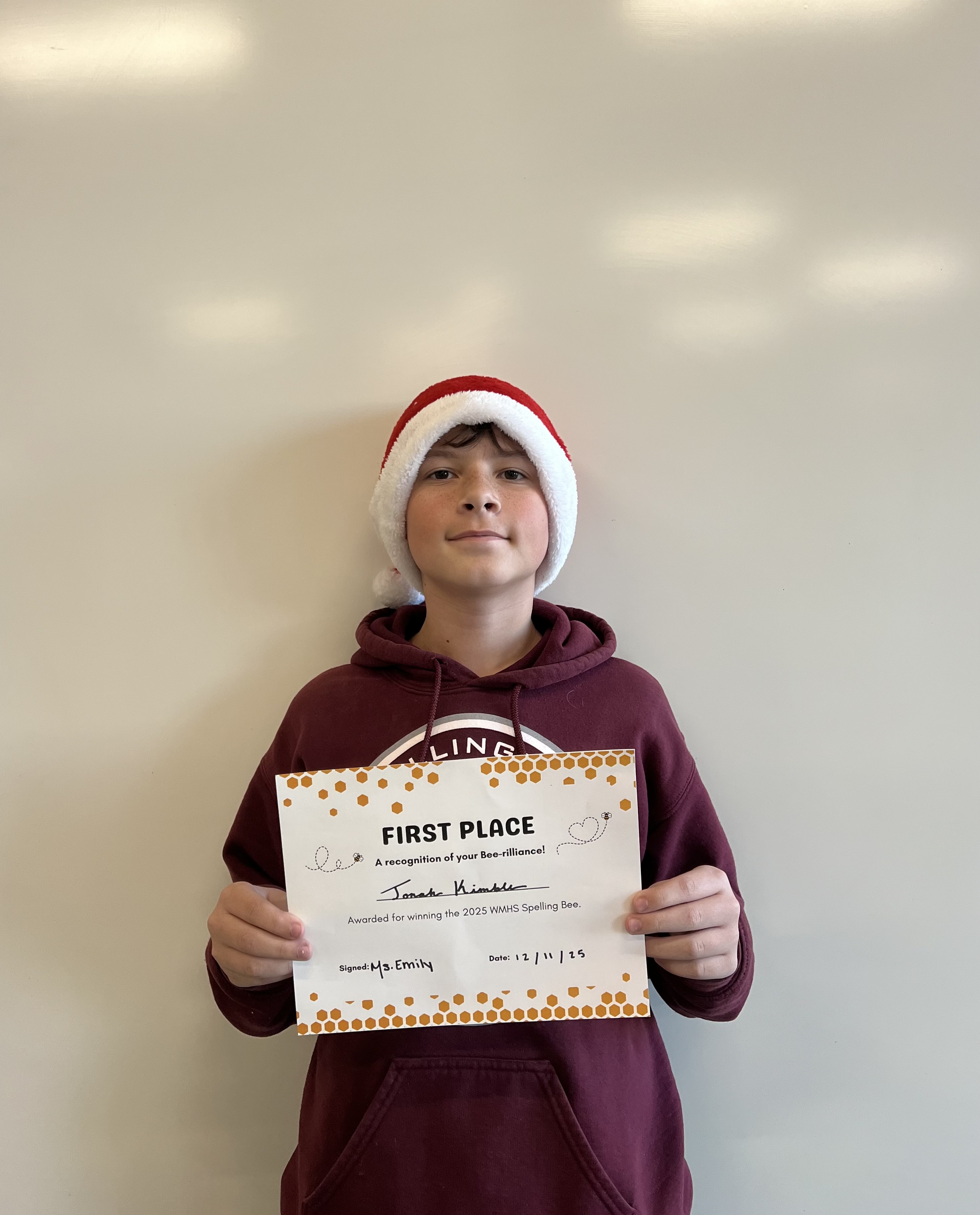 Congratulations Jonah on winning the 25/26 Spelling Bee.